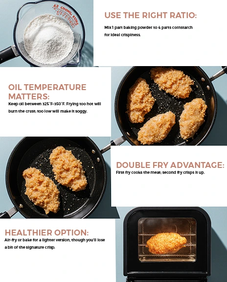 • Use the Right Ratio: Mix 1 part baking powder to 4 parts cornstarch for ideal crispiness.